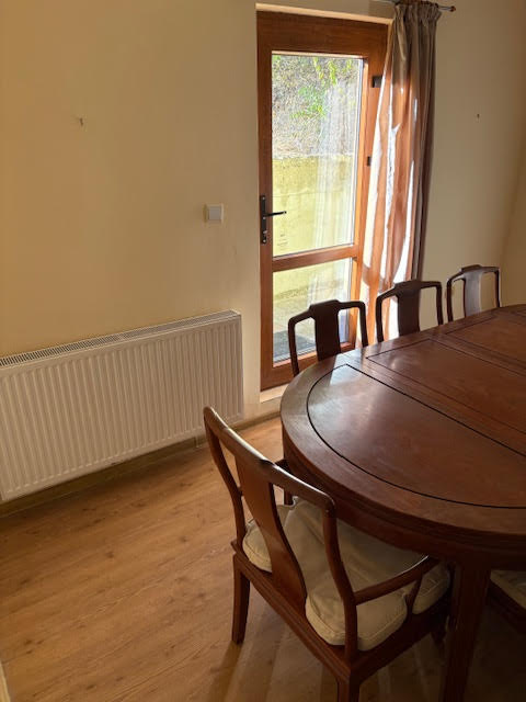 Отделочные работы: Дом полностью отделанный - мрамор, терракота и ламинат на полу; покрашенные водоэмульсионной краской стены и потолки; установлены пластиковые окна; установлены пластиковая входная и интерьерные двери; санузлы - полностью отделанные и оборудованные, терракота на полу, кафель на стенах, сантехника, водонагреватели; отопление решено с помощью котла на дровах и локального парового отопления с радиаторами во всех комнатах.