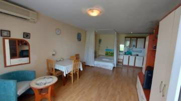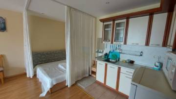 Предлагаем на продажу полностью обставленную студию общей застроенной площадью 52 кв.м, которая находится на третьем этаже в пятиэтажном здании. Из окон студии открывается прекрасный вид на парковую зону комплекса и на соседние здания в Святом Власе. Студия подходит как для отдыха, так и для постоянного проживания.